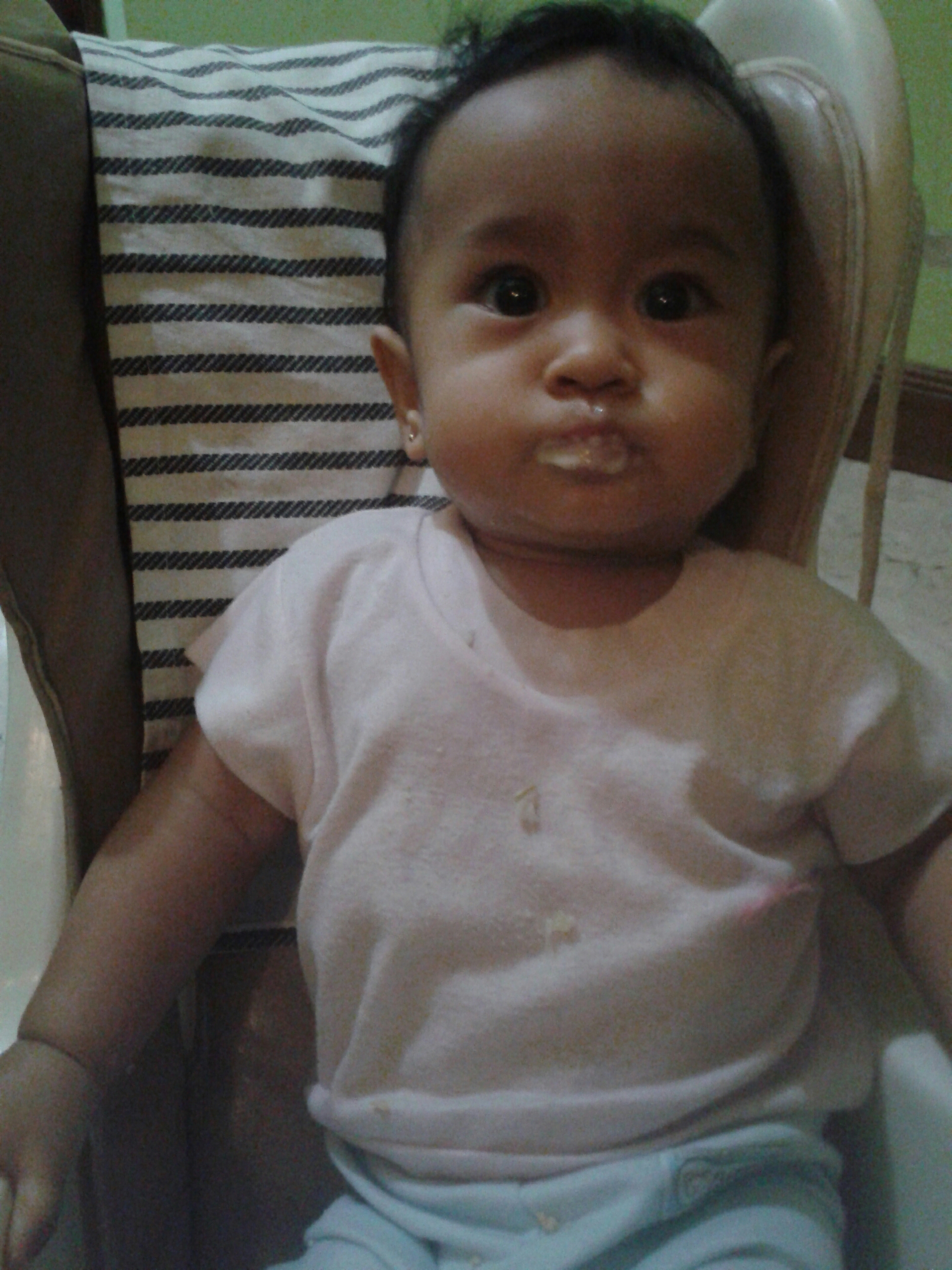 She has been a good eater. Finished almost everything given to her. Since three weeks ago, she started having real porridge and it has been a week since we rarely use a blender because she is able to chew the food well. Alhamdulillah.
