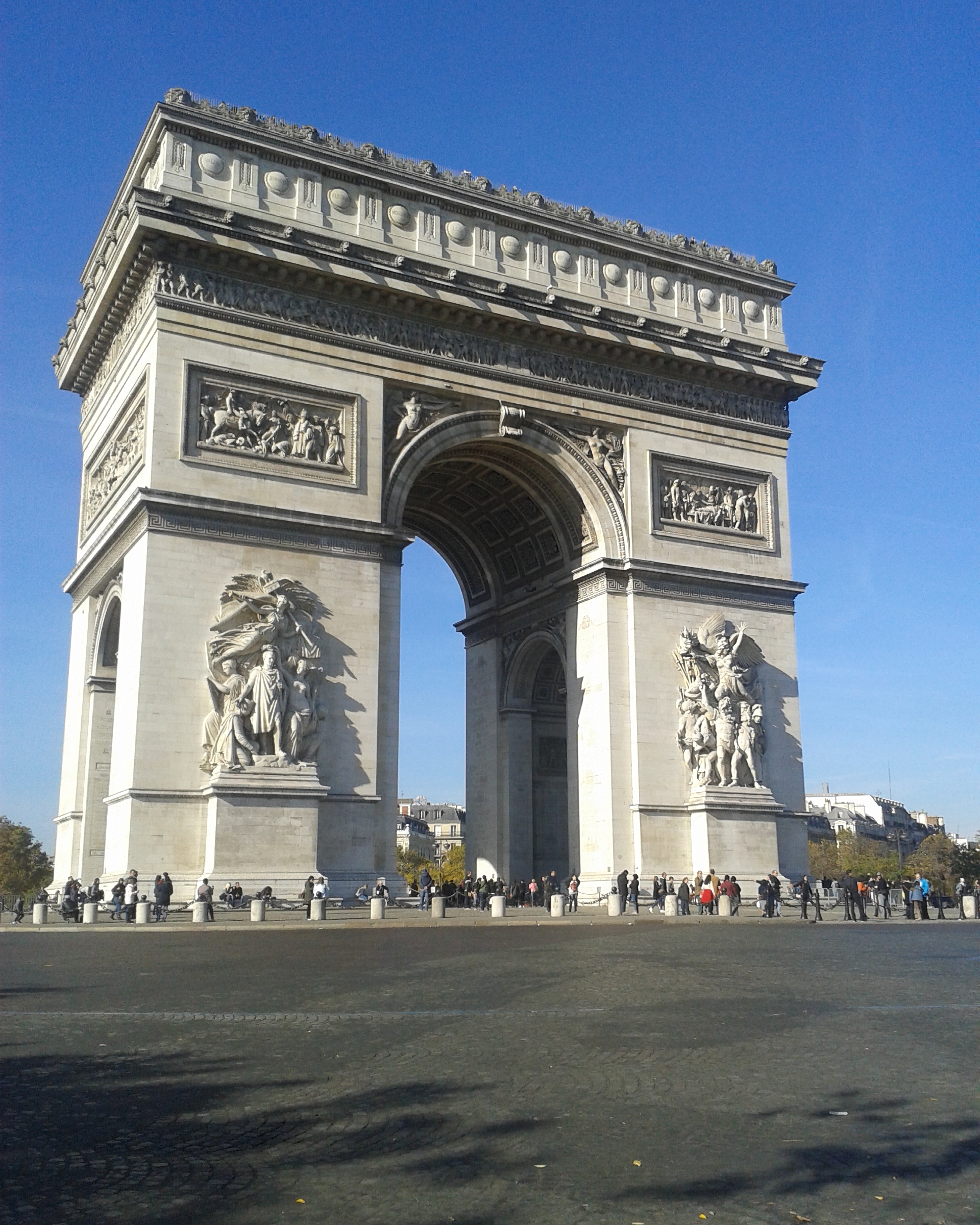 Clear blue sky and le grand Arc de Triomphe