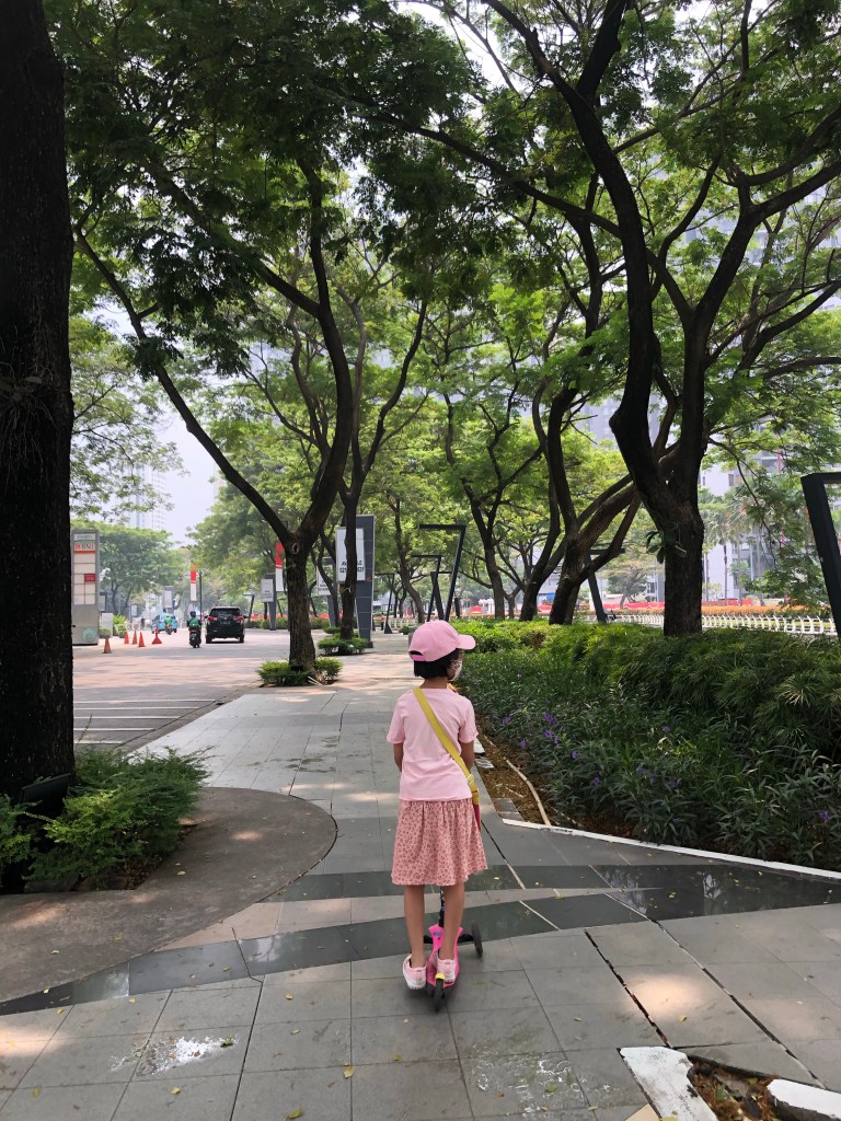 Parking is also another tricky thing to have outdoor time here. Why didn’t go by public transport then? Because we need to move places and guess what? Children is also currently not allowed to ride on public transport like MRT, only angkot allowed. Being children is underratedly hard here.