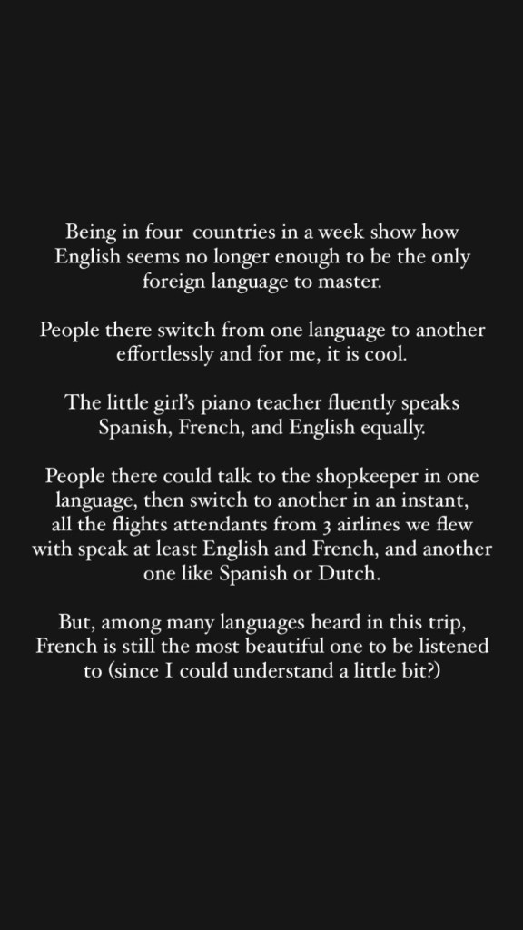 I think when you live in Europe, mastering other language than English is a necessity (unless you’re living in English-speaking country, of course). Most of people I know in here are at least trilingual, and they switch effortlessly.